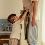For little builders, this wooden tool belt is an absolute must-have! The adjustable belt is always comfortable and is filled with five different tools, such as a hammer, screwdriver, and wrench. Ideal for role-playing and developing motor skills. Combine it with the workbench and toolbox for a complete workspace. Ready to build and repair?