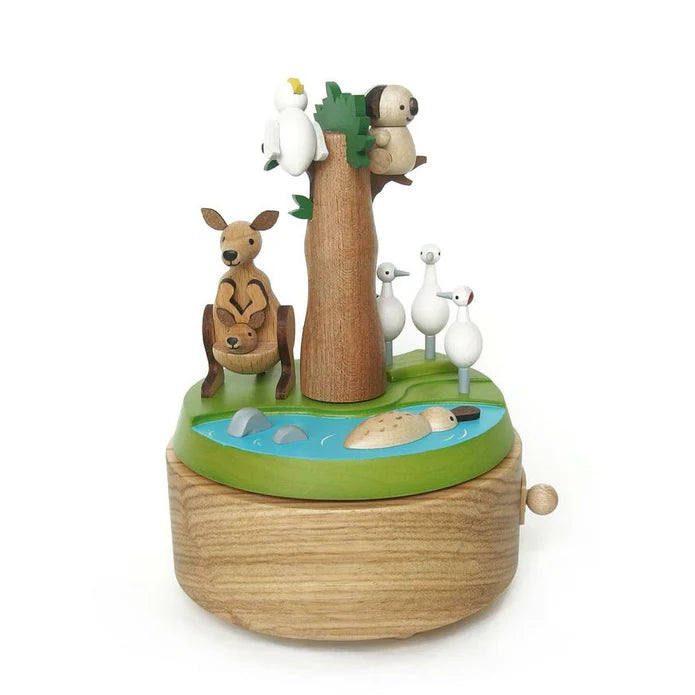 Combining traditional techniques with modern technology, this music box does not need batteries. To see the animal friends move, turn the winder under the music box. A knob at the side lets you stop and restart the music any time for added control.