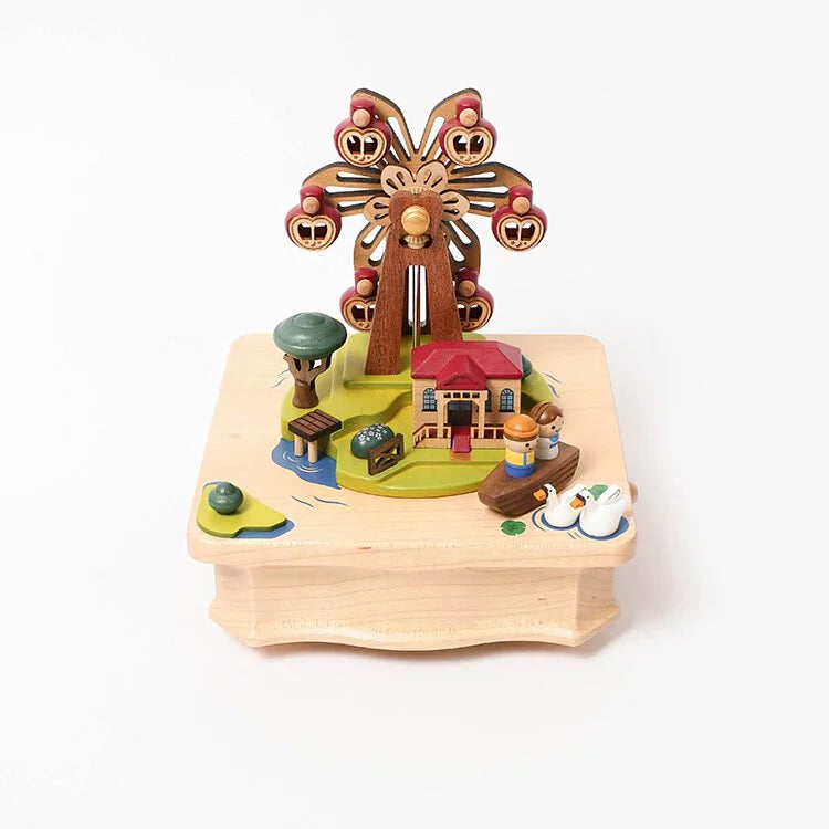 Combining traditional techniques with modern technology, this music box does not need batteries. To see the animal friends move, turn the winder under the music box. A knob at the side lets you stop and restart the music any time for added control.