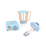 Prezzo unitario perChop and blend fruity ingredients to make delicious juices and smoothies with this Bluey Wooden Smoothie Set. Use the wooden knife to cut up the fruits, remove the lid of the blender and pop your chosen recipe card ingredients inside. Just remember to keep the lid on when you turn the dial! Once smooth-ied, pour into the charming Bluey wooden cups and place the straws in ready to be served.