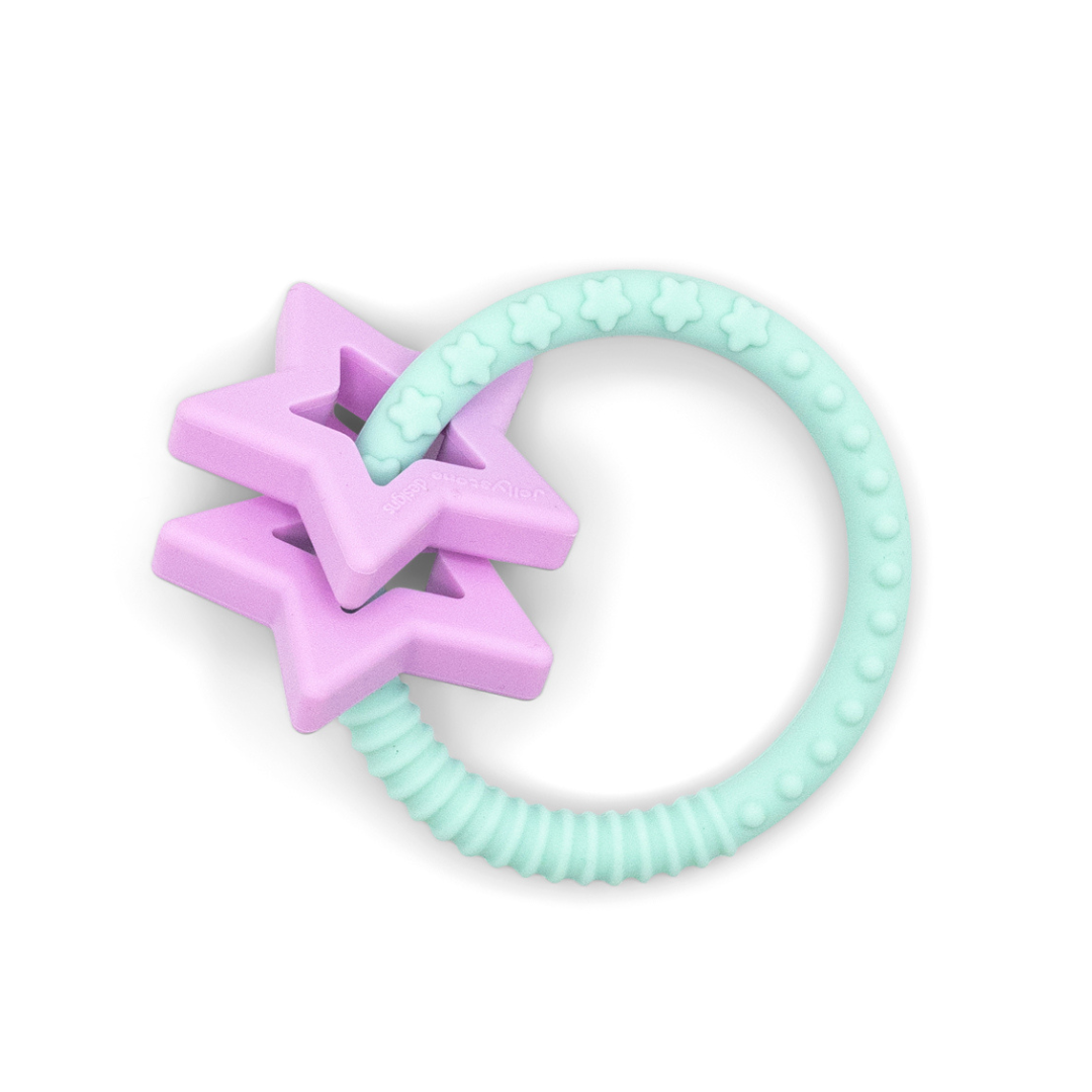 单价 每Our Star Teether offers an easy to grasp ring for tiny hands and two bright stars that are soft on gums and ideal for teething babies. Clip the teether onto your nappy bag or stroller so it never gets lost! Made from BPA free, phthalate free, non toxic silicone, this teether is safely chewable for your little one.