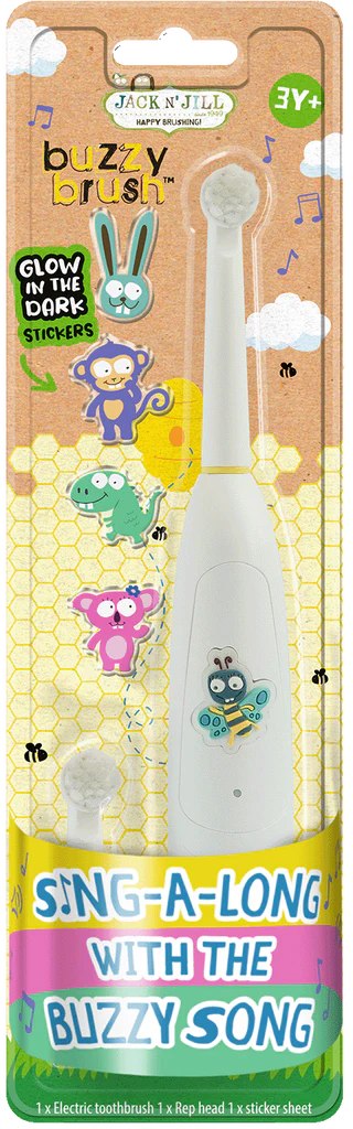 Sing along with Buzzy today using our Jack N’ Jill Natural Toothpaste in your favourite flavour and watch the fun your child will have brushing their teeth!