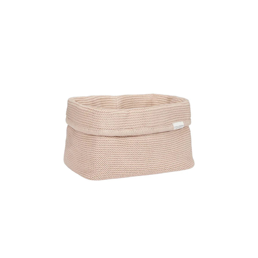No more messy nappies, tubes and bottles: this Little Dutch commodity basket keeps the  changing table nice and tidy and organised! The Little Dutch commodity basket is  beautifully finished and offers a storage place for all the products you need to care for  your baby every day. A lovely accessory for the nursery. Made of a knitted fabric in 100%  organic cotton and oekotex certified. The baskets reinforced, so it will also hold up well without or with few items in it. The basket has a wrap-around edge, allowing you to use  the basket in 2 heights. The inside also has the knitted fabric, giving it a luxurious look. If you no longer use the baskets for the baby’s room, they also look great as accessories in the living room.
