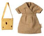 单价 每Mum mouse in light brown body fabric. She wears a dress and a bag with cheese holes. This mouse fits furniture and accessories in size mouse. Buy more clothes separately, clothes in size mum/dad fits this mous
