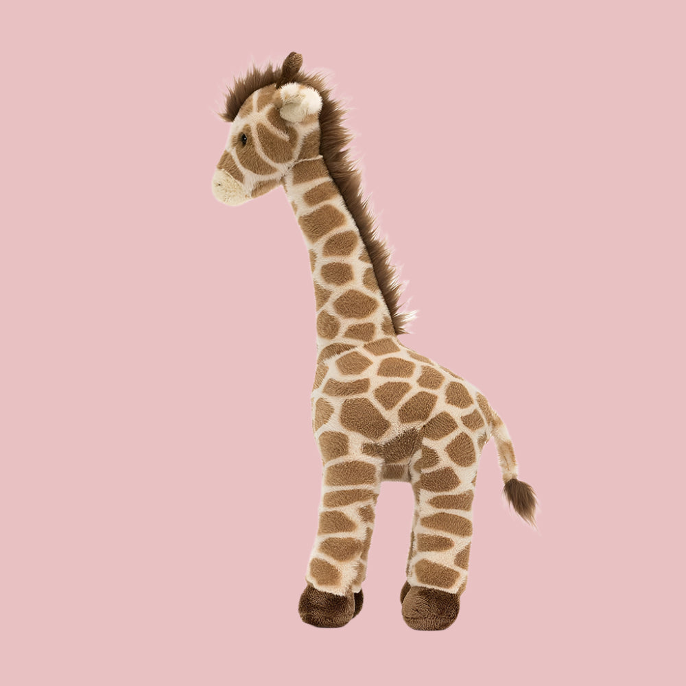 单价 每A lofty mascot for any nursery, Dara Giraffe stands tall and proud! Scrumptiously soft in mottled banoffee fur, with cocoa horns, weighted hooves, a silky mane, and tufty tail. With such a welcoming smile, Dara makes playtime a fun safari!