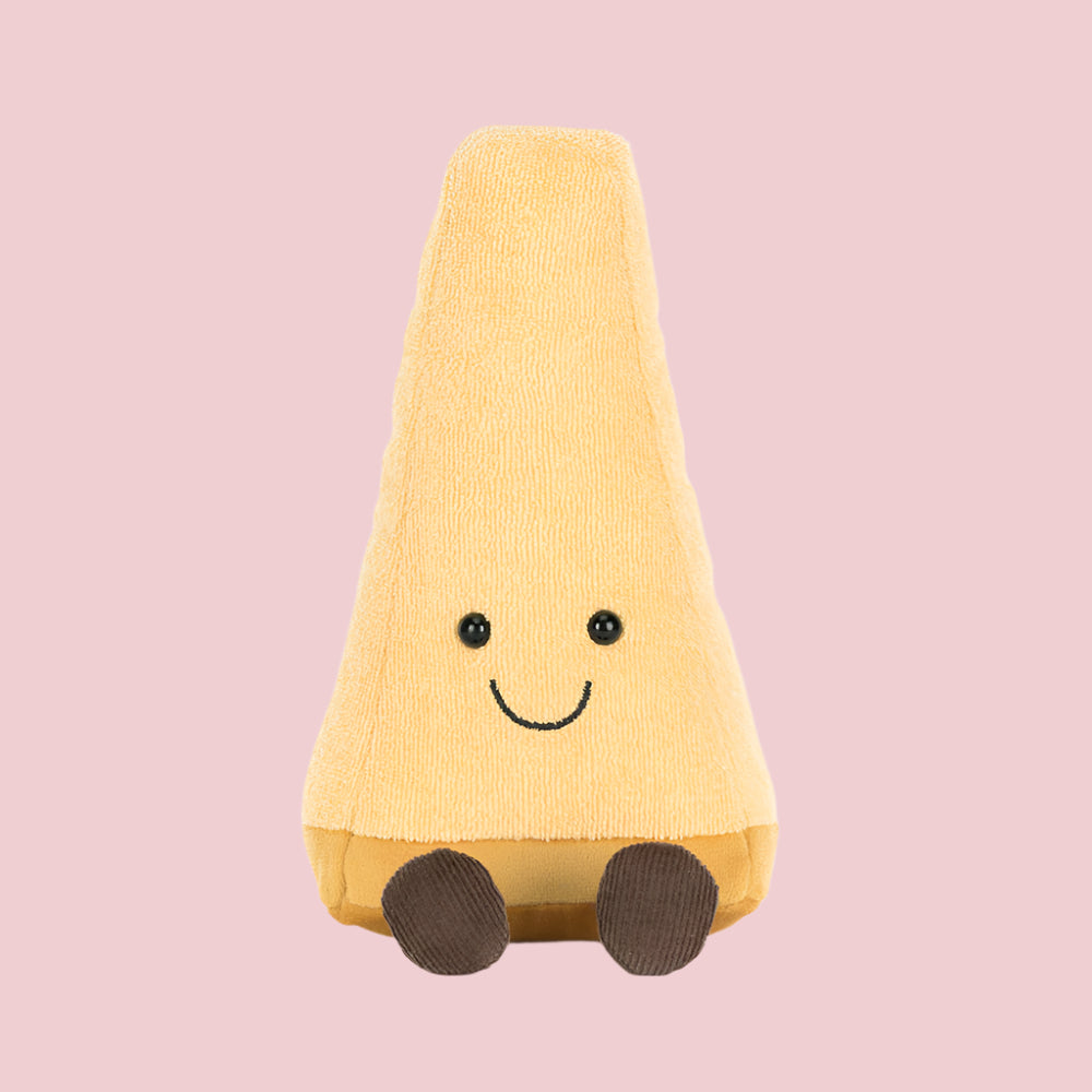 Amuseables Parmesan is a practically perfect cheese! In light yellow fur with a darker, textured rind, this wedge of joy has a big stitched smile and fine cord cocoa boots – the perfect accompaniment to every foodie adventure!