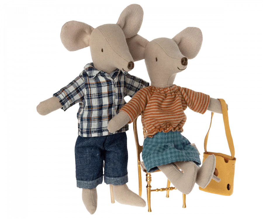 单价 每Mum Mouse from Maileg is incredibly stylish, showcasing her unique fashion sense in a charming striped shirt and a delightful chequered skirt that dances with every movement.