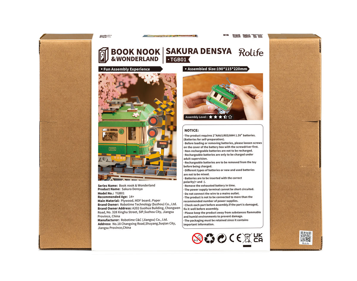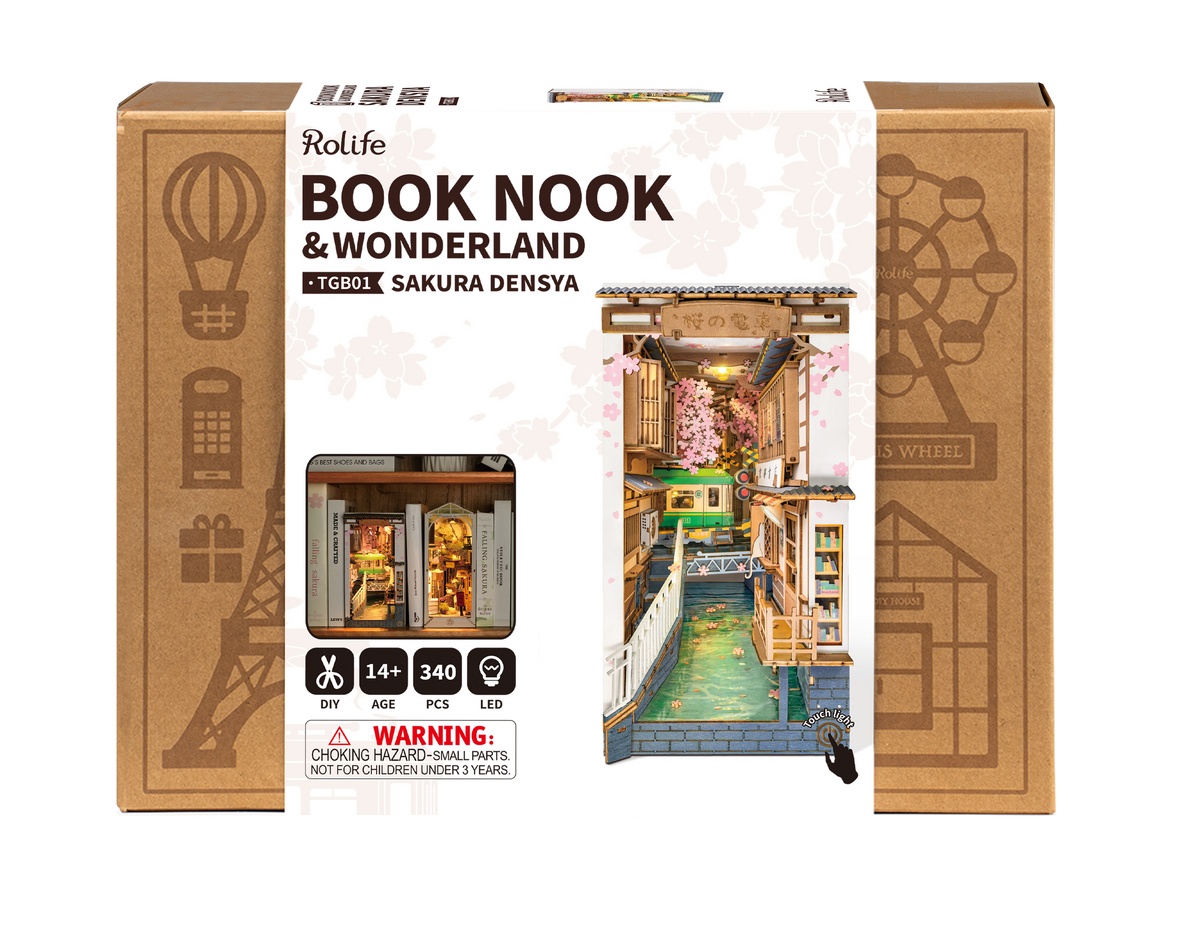 单价 每This Robotime-Rolife Sakura Densya Book Nook TGB01 is a 3D wooden puzzle miniature house kit that you could build with your own hands. It will show a beautiful scene of Tokyo streets in Spring after finishing this artwork. This miniature house book nook will be a great home decor for a bookshelf or any other room space. It will also look amazing when you put it in the dark with the warm lights on. More importantly, it can help create your imagination and increase creativity, which is a perfect hands-on gift for kids & adults.